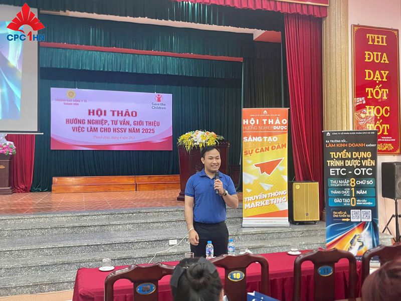 Trong hai ngày 08-09/04/2025, chuỗi sự kiện Hướng nghiệp và Ngày hội việc làm tại Trường Cao đẳng Y tế Thanh Hóa đã diễn ra đầy sôi động. Với sự góp mặt của Công ty Cổ phần Dược phẩm CPC1 Hà Nội (CPC1HN), chương trình đã trở thành bệ phóng quan trọng, giúp hàng ngàn sinh viên ngành Dược định vị bản thân và nắm bắt cơ hội nghề nghiệp trong kỷ nguyên công nghệ số.