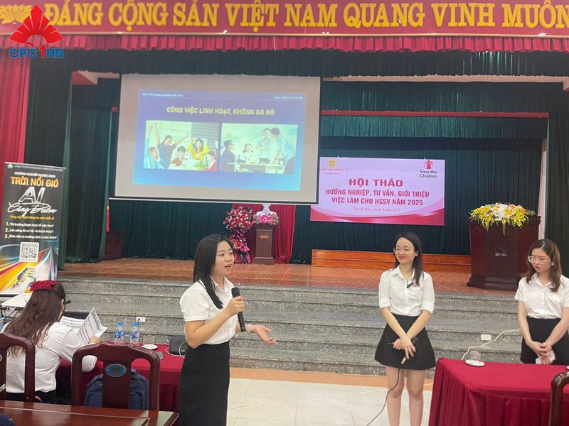 Điểm nhấn xúc động của chương trình là phần chia sẻ từ các cựu sinh viên nhà trường hiện đang công tác tại CPC1 Hà Nội. Những câu chuyện thực tế về hành trình từ giảng đường đến môi trường doanh nghiệp lớn đã truyền cảm hứng mạnh mẽ, giúp các bạn sinh viên có cái nhìn chân thực và tự tin hơn về con đường phía trước.