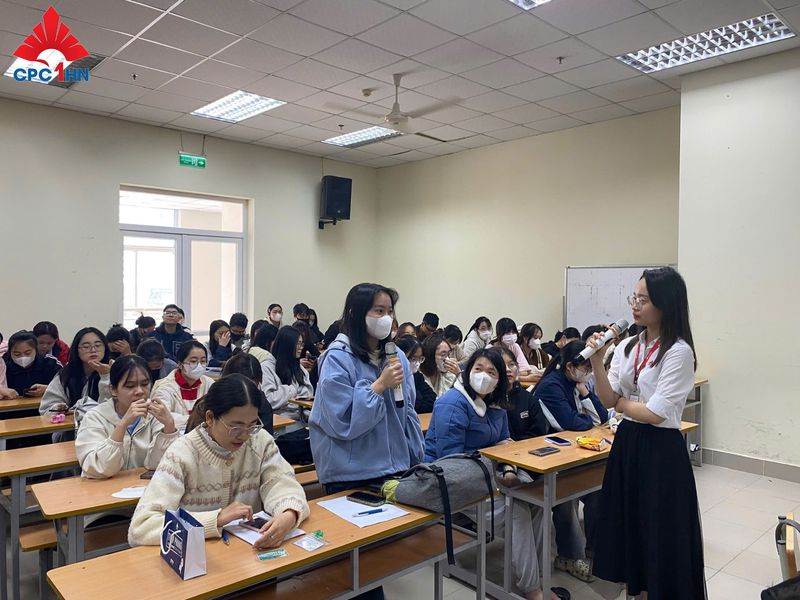 Không khí hội trường trở nên "nóng" hơn bao giờ hết trong phần giao lưu hỏi đáp (Q&A). Hàng loạt thắc mắc về kỹ năng mềm, cơ hội thực tập và yêu cầu tuyển dụng đã được giải đáp thỏa đáng. Những phần quà ý nghĩa từ CPC1 Hà Nội trao tay các bạn sinh viên không chỉ là niềm vui nhỏ mà còn là lời động viên to lớn, khích lệ tinh thần học hỏi không ngừng.