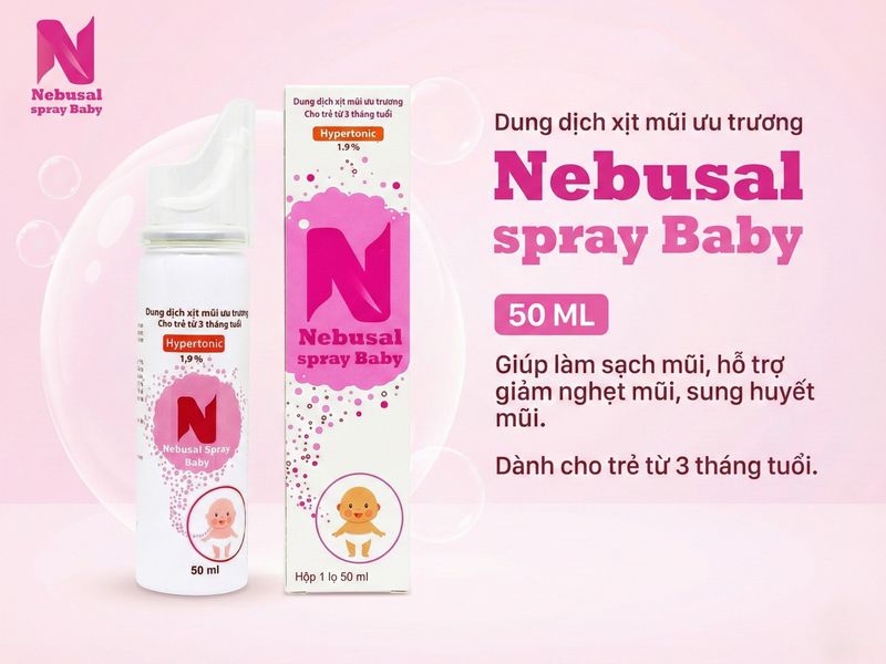 Nebusal Spray 1.9% (Nước muối biển ưu trương): Nếu mẹ bị nghẹt mũi, sổ mũi nặng, dòng ưu trương này giúp giảm phù nề niêm mạc mũi theo cơ chế thẩm thấu tự nhiên, giúp mẹ thông mũi, dễ thở hơn mà không cần dùng đến các loại thuốc co mạch có thể gây ảnh hưởng đến lượng sữa.