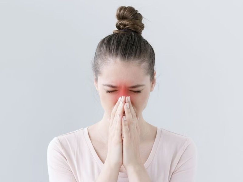 Cảm giác đau hoặc áp lực ở vùng xoang, đặc biệt khi cúi đầu hoặc ấn nhẹ vùng mặt.