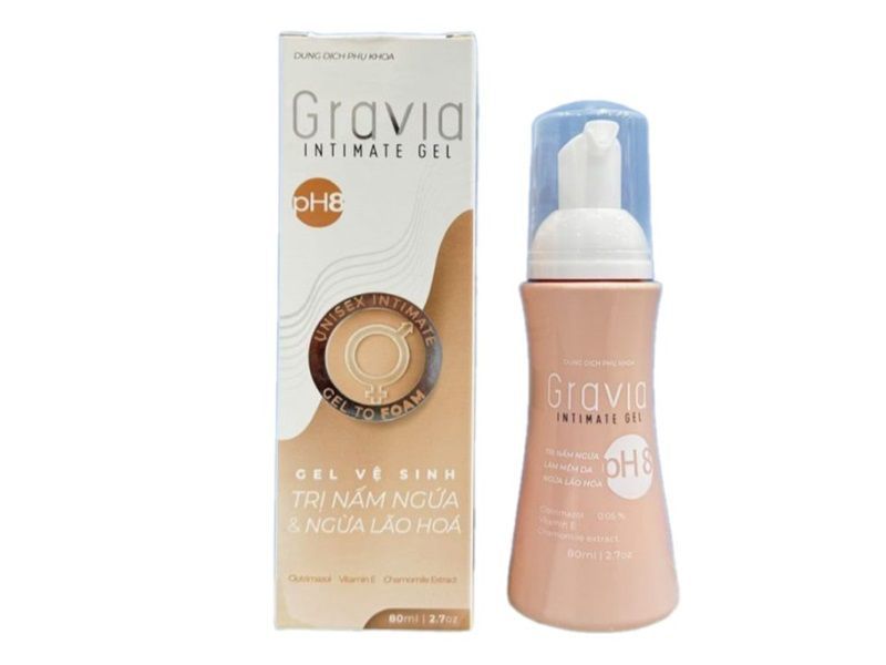 Dung dịch vệ sinh phụ nữ sau sinh Gravila, sản xuất bởi CPC1 Hà Nội, có tác dụng làm sạch, khử mùi, bảo vệ vùng kín và duy trì độ pH tự nhiên, thích hợp cho phụ nữ sử dụng hằng ngày.