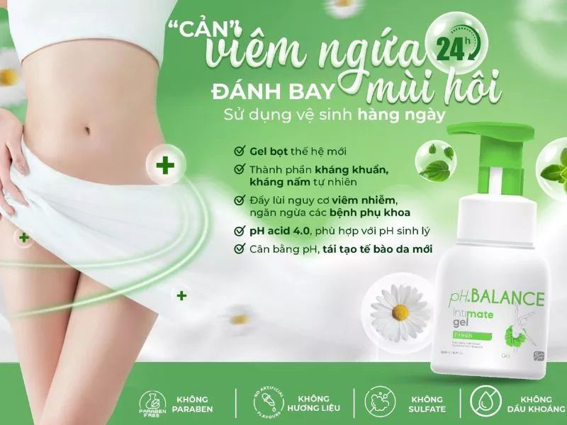 Bọt vệ sinh phụ nữ pH Balance Intimate Gel của Công ty Dược CPC1 Hà Nội là sản phẩm chăm sóc vùng kín hàng ngày, đặc biệt phù hợp trong thời kỳ kinh nguyệt, mang thai, sau sinh hoặc trước – sau quan hệ.