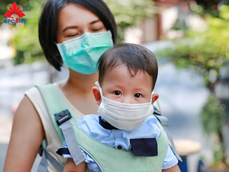 Lây nhiễm qua đường hô hấp: Virus phát tán trong không khí khi người bệnh ho, hắt hơi hoặc nói chuyện. Trẻ hít phải hoặc tiếp xúc trực tiếp với giọt bắn chứa virus dễ bị nhiễm bệnh.