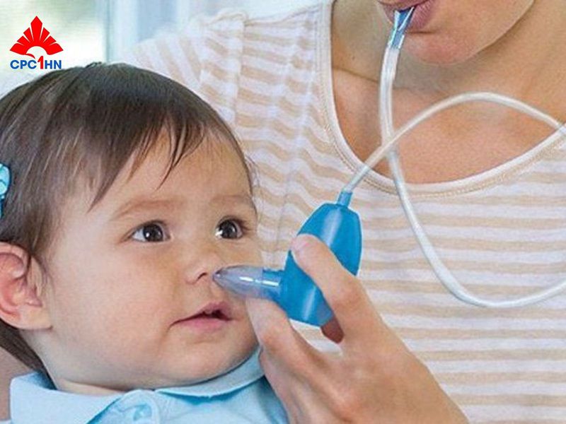 Khi trẻ không thể tự xì mũi, hút mũi là cách hữu hiệu để loại bỏ dịch đặc gây tắc nghẽn.