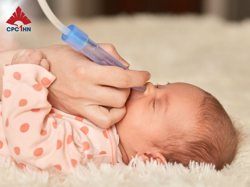 Vệ sinh mũi đúng cách giúp trẻ sơ sinh dễ thở hơn và giảm tình trạng ho sổ mũi. Cha mẹ nên nhỏ nước muối sinh lý 0,9% vào từng bên mũi để làm loãng dịch nhầy, sau đó dùng dụng cụ hút mũi mềm nhẹ nhàng lấy dịch ra. Thực hiện khi bé đang tỉnh, trước cữ bú hoặc trước khi ngủ để bé dễ chịu hơn. Không hút mũi quá nhiều lần trong ngày để tránh làm tổn thương niêm mạc mũi. Sau khi vệ sinh, nên lau khô mũi và giữ ấm cho bé.