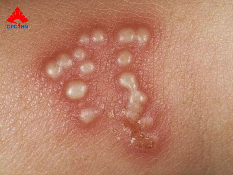 Mụn rộp vùng kín thường biểu hiện dưới dạng những nốt mụn nước nhỏ li ti hoặc bóng nước mọc thành cụm, dễ vỡ, gây đau rát và khó chịu. Khi mụn vỡ ra, vùng da xung quanh có thể bị loét nông, kèm cảm giác nóng rát hoặc ngứa ngáy.