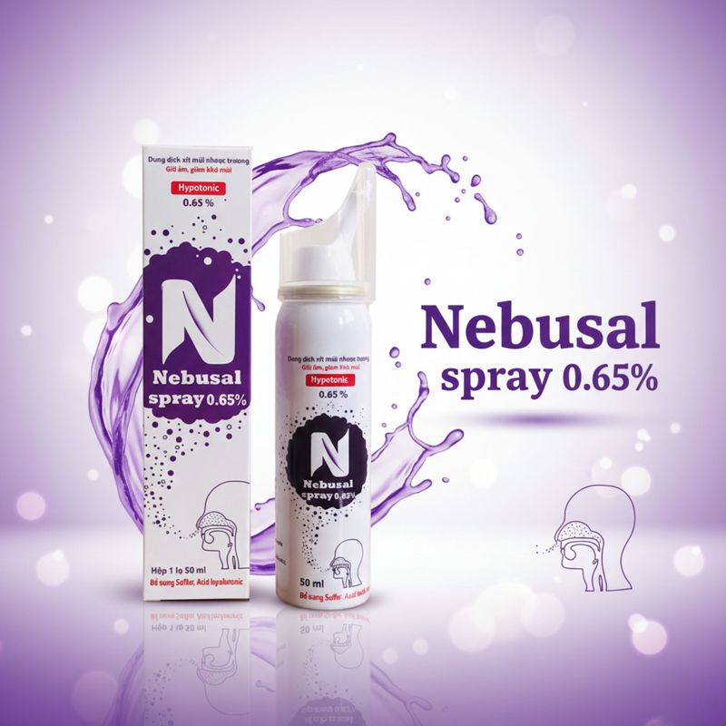 Nebusal Spray 0,65% là dung dịch xịt mũi nhược trương (0,65% NaCl) được sản xuất bởi Công ty Cổ phần Dược phẩm CPC1 Hà Nội, phù hợp dùng hàng ngày cho cả trẻ nhỏ và người lớn nhằm cung cấp độ ẩm, giảm khô và ngứa niêm mạc mũi trong điều kiện thời tiết hanh khô hoặc khi phải sử dụng điều hòa thường xuyên.
