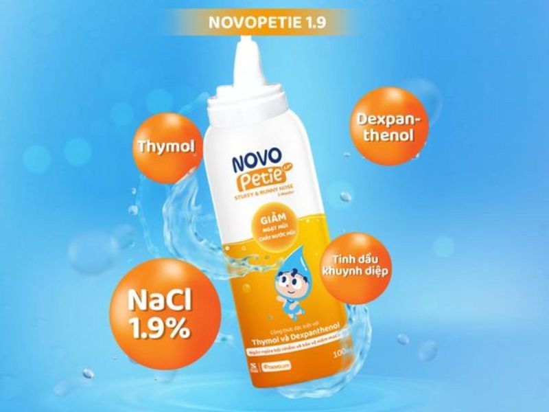 Xịt mũi Novopetie 1.9% là dung dịch muối ưu trương kết hợp tinh dầu khuynh diệp và Thymol. Sản phẩm giúp làm loãng dịch nhầy, giảm nghẹt mũi, giảm chảy nước mũi, đặc biệt hiệu quả cho trẻ bị viêm mũi dị ứng, cảm cúm hoặc viêm xoang.