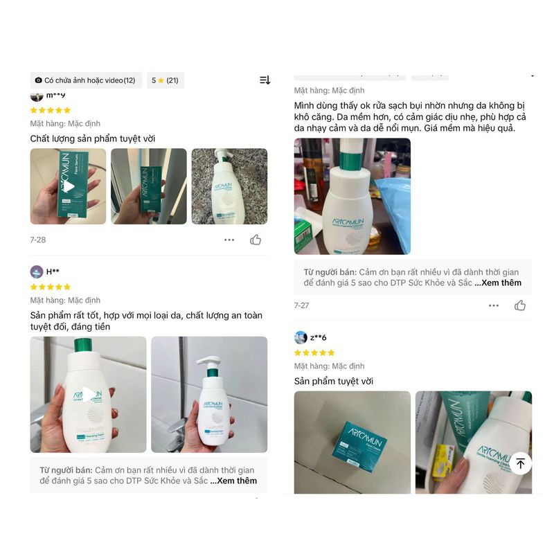 Phản hồi từ khách hàng là minh chứng rõ nét nhất cho chất lượng của Aricamun Gentle Foaming Cleanser. Dưới đây là một số chia sẻ chân thực từ người dùng đã trải nghiệm sản phẩm: