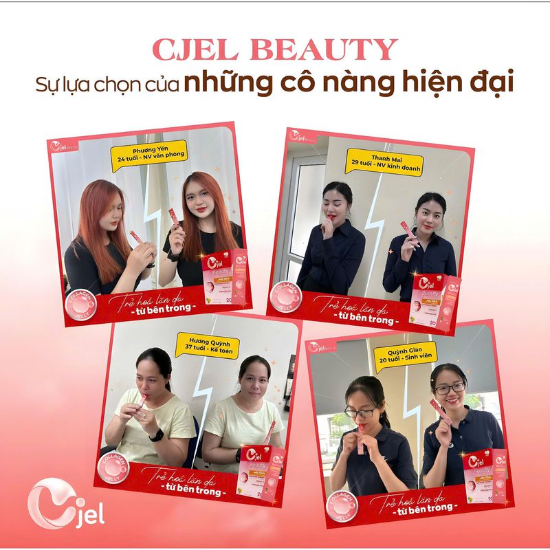 Chị H. (35 tuổi, Hà Nội): "Sau 2 tháng sử dụng Cjel Beauty, mình cảm nhận rõ làn da mềm mịn hơn, các vết nám mờ đi và da sáng hơn hẳn. Mình rất thích dạng thạch vì tiện lợi và ngon miệng."