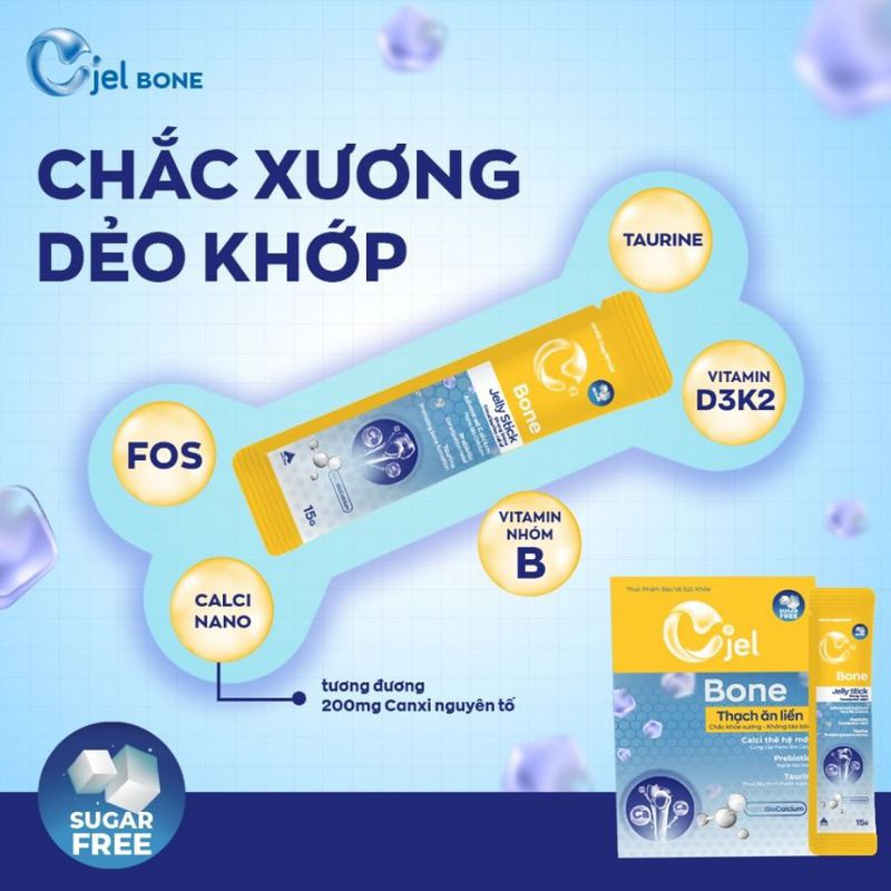 Bạn lo lắng vì xương yếu, khớp kém linh hoạt hay nguy cơ loãng xương theo tuổi tác? Đừng để những cơn đau âm ỉ cản trở cuộc sống năng động của bạn. Thạch ăn liền Cjel Bone giúp bổ sung canxi tiện lợi, giúp xương chắc khỏe, khớp dẻo dai, hỗ trợ giảm nguy cơ loãng xương hiệu quả. Với hương vị thơm ngon, dễ dùng mỗi ngày, Cjel Bone không chỉ là món ăn vặt mà còn là "trợ thủ đắc lực" cho hệ xương khớp khỏe mạnh dài lâu, phù hợp với mọi độ tuổi.