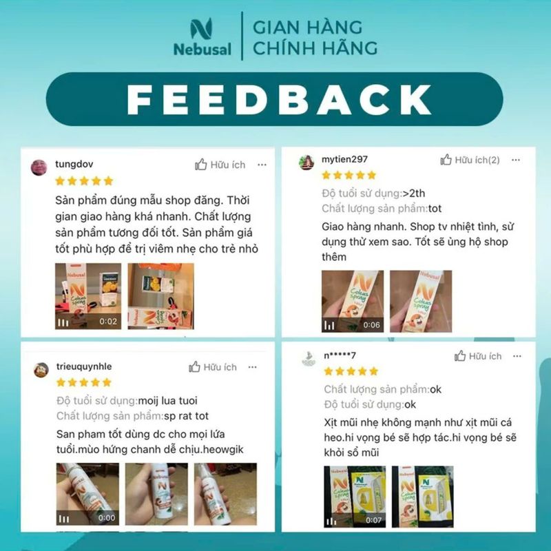 “Bé nhà mình mỗi lần nghẹt mũi là bú ít, ngủ chập chờn. Từ khi dùng Nebusal Coleus Spray Baby, bé dễ chịu hẳn, đêm ngủ ngon hơn, mà mình cũng yên tâm vì thành phần thiên nhiên lành tính, an toàn cho con.”